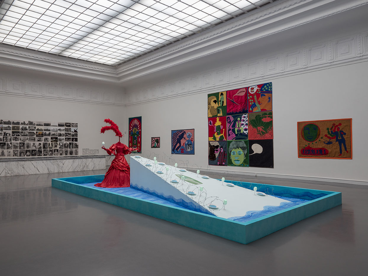 "Wie der Titel bereits verrät, wird in dieser Ausstellung alles zu sehen sein, was die künstlerische Praxis der legendären Ottinger ausmacht. Diese Ausstellung ist ganz der Fantasie dieser außergewöhnlichen Künstlerin gewidmet und blättert wie ein Wörterbuch, das ihre Sprachen definiert, oder ein Alphabet, das ihre Geschichten entschlüsselt, ihr vielseitiges und langjähriges Oeuvre auf. Die Ausstellungsräume der Kunsthalle werden zur Bühne, zum Filmset, zum Studio, zum Backstage, zum Archiv und zum lebendigen Museum. Fotografische Bilder kartieren einen Atlas jener Orte auf der Welt, an denen sie ihr Leben verbracht hat, während installative Elemente und skulpturale Formen ihr Verständnis von Körpern widerspiegeln. Filmische Räume, die ihre Politik des Erzählens und ihre politischen Statements in vielen verschiedenen Formen wiedergeben, schaffen Zwischenräume durch eigene Einsichten und Perspektiven. (...)