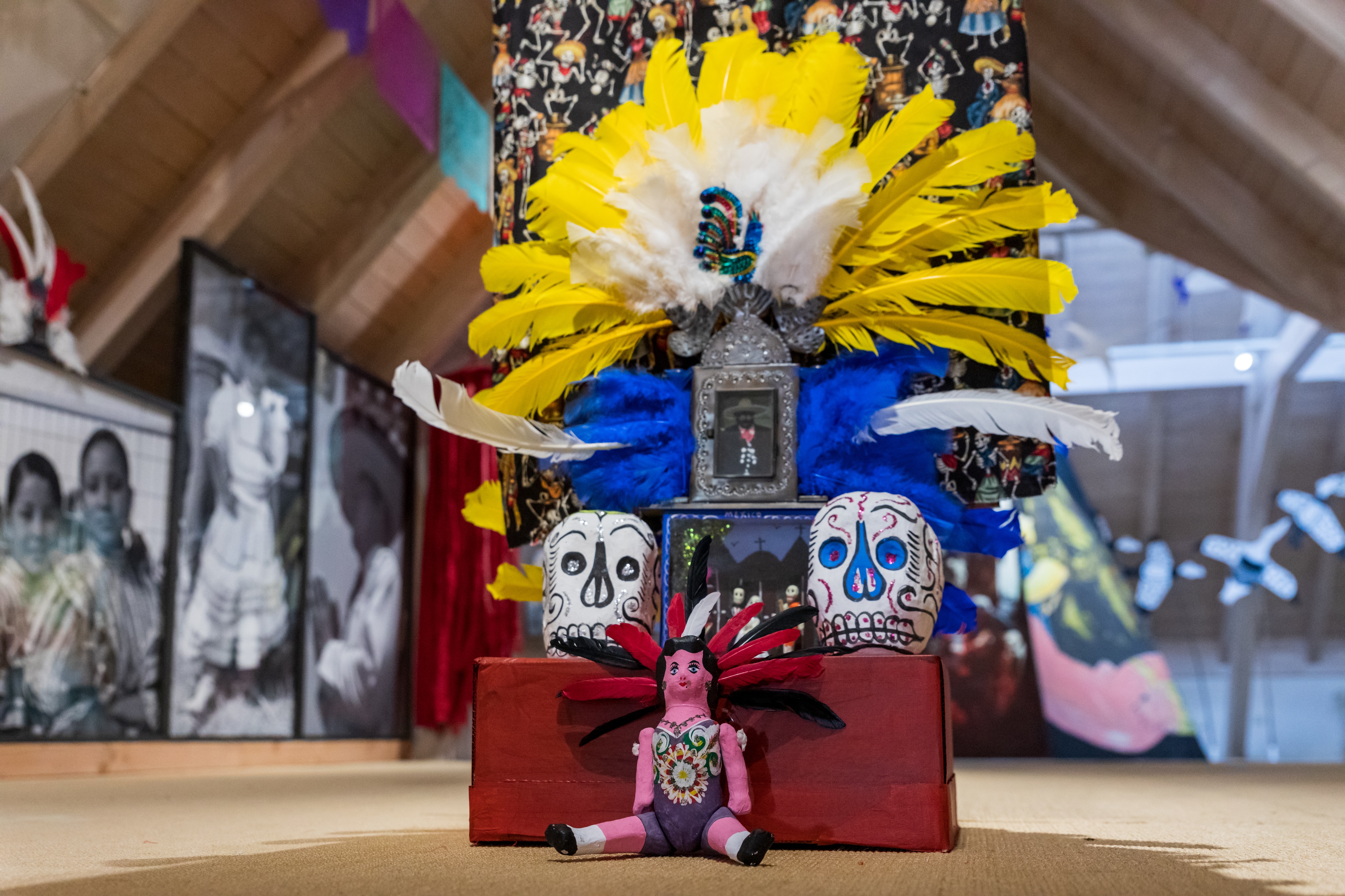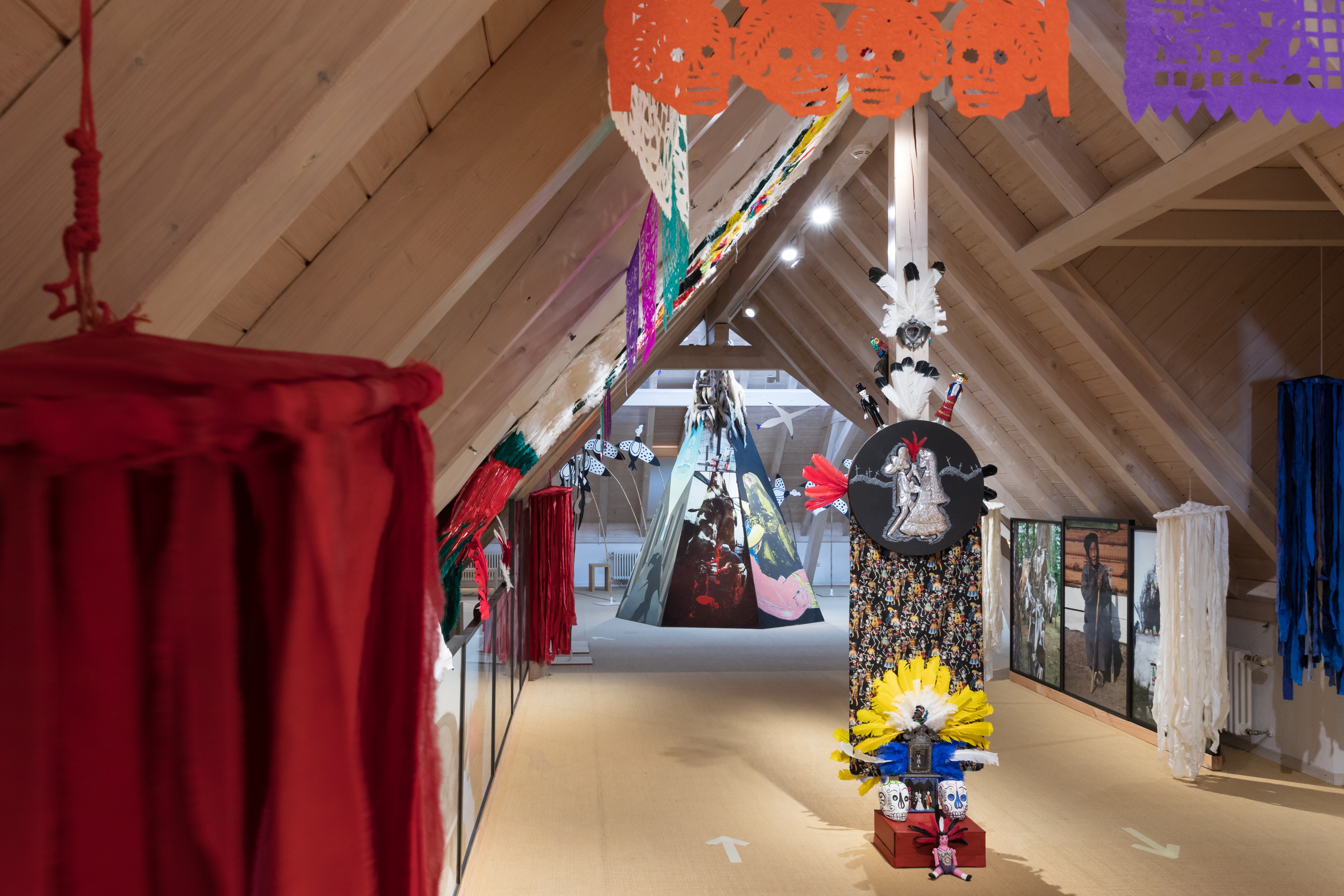 In der anlässlich der Preisverleihung konzipierten Ausstellung im Hans-Thoma-Kunstmuseum hat Ulrike Ottinger die Ausstellungsräume in eine vielschichtige begehbare Installation transformiert. Mongolia – Mexico – Europa zeigt Malereien, Skulpturen, Fotografien, Filme und dokumentarisches Material aus unterschiedlichen Schaffensperioden, vor allem die Ergebnisse Ulrike Ottingers Reisen an entlegene Orte der Welt. Sie stellt die unterschiedlichen Kulturen aus Mongolei und Mexiko gegenüber, vergleicht diese mit Europäischem und schafft damit neue Denkräume.
