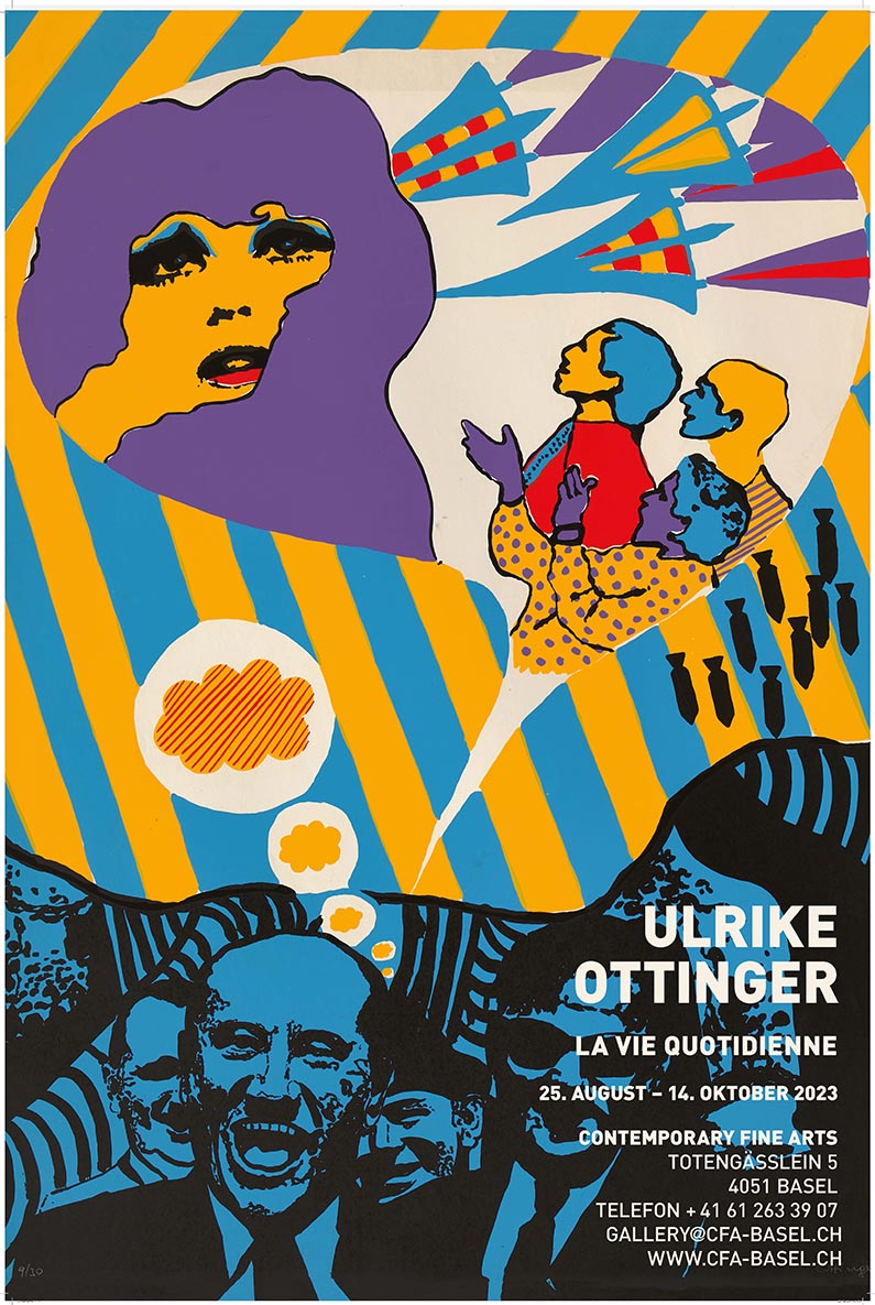 Wir (CFA Basel) freuen uns, bislang selten gezeigte Werke aus diesen frühen Pariser Jahren Ottingers in unseren neuen Galerieräumen in Basel zeigen zu dürfen. Diese sind nicht nur eindrucksvolle Werke eigener Bildsprache, in ihnen kündigt sich auch bereits Ottingers späteres cineastisches Idiom an, welches ihr eine beeindruckende weltweite Karriere als Filmkünstlerin bescherte (...). "