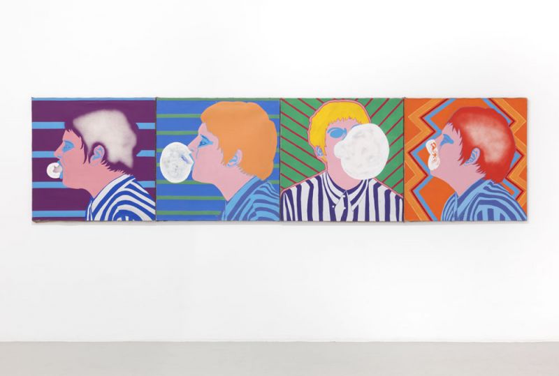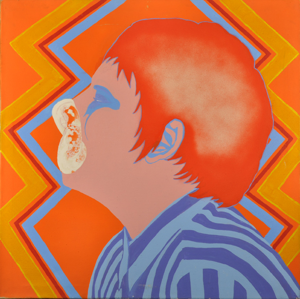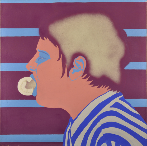 Die Ausstellung zeigt daher vieldeutig das Blow up einer Bubblegum-Sequenz, die jedwede Sinnproduktion platzen läßt – eine Bildfolge, die ironisch auf die Pop Art als Kunst der Kaugummikauer anspielt – wie sie despektierlich aus der Warte der Hohen Kunst genannt wurde. Oder die Künstlerin spielt ironisch mit dem Image von Allen Ginsberg, der stadtnomadisierenden Kultfigur der Beat Generation, der wiederum die amerikanische Nationalikone des Uncle Sam blasphemisch parodiert. Das Pop-Porträt wurde in Puzzleteile zerstückelt dem Bremer Galerie-Publikum 1967 präsentiert – in gestischer Analogie auch zum poetischen Montageverfahren des „Cut up“ der Beat-Literaten.