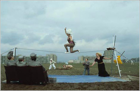 "Ulrike Ottinger ist vor allem als Regisseurin bekannt. Gleichzeitig hat sie aber immer auch als Fotografin gearbeitet, teils im Zusammenhang mit ihren Filmen, teils unabhängig davon. Begleitend zum Symposium Metamorphosen. Ulrike Ottingers Künste, das von der Deutschen Kinemathek und dem Einstein Forum gemeinsam am 8. und 9. Dezember im Museum für Film und Fernsehen in Berlin veranstaltet wird, zeigt das Einstein Forum in seinen Räumen eine Auswahl dieser Fotografien. Thematisch gruppieren sie sich um den Gegensatz von Stadt und Land, Aufnahmen von ihren Reisen nach Asien und Osteuropa zusammen mit Szenen aus dem Berlin der 1970er und 80er Jahre. Darüber hinaus sind einige der Verzerrungsstudien mit Magdalena Montezuma zu sehen."