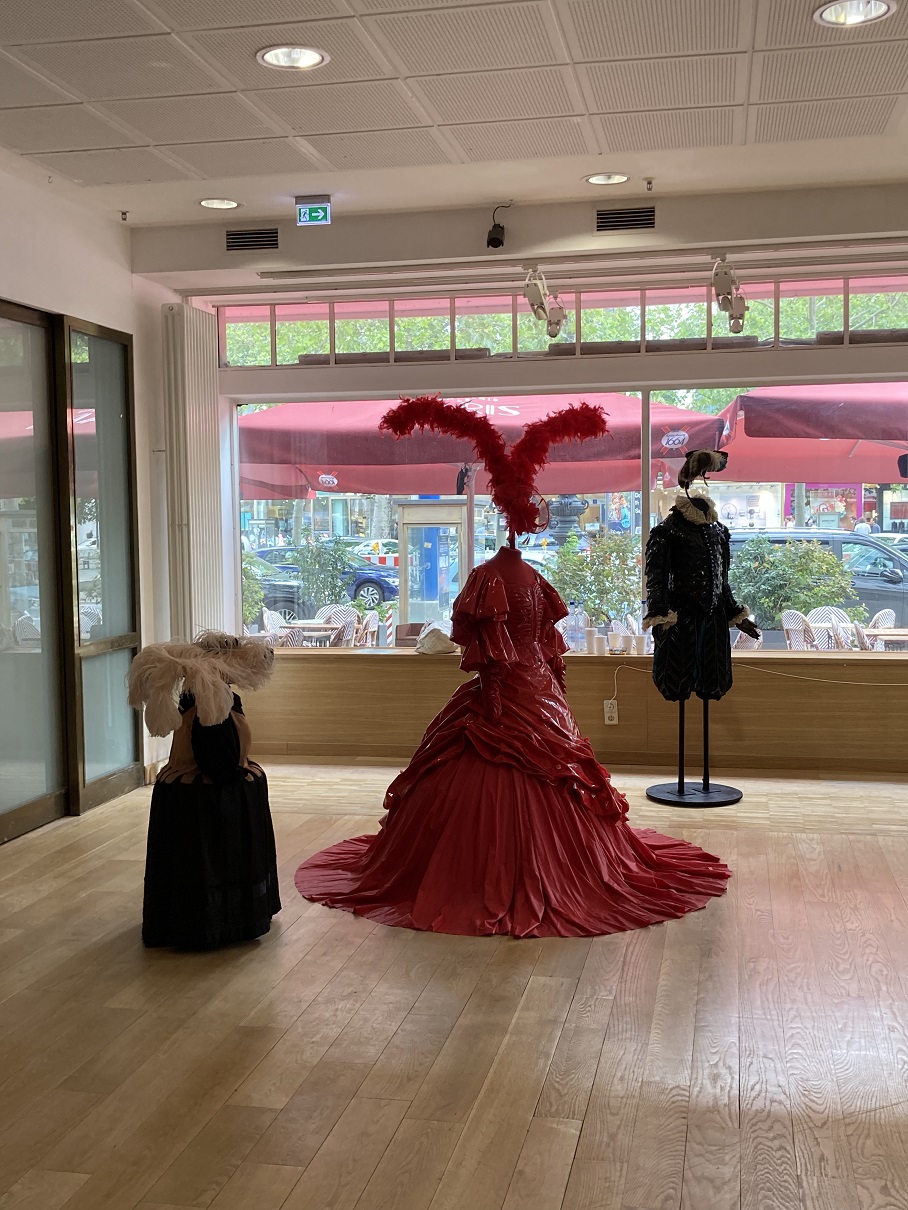 "Ulrike Ottinger verfolgt in ihrer Präsentation am Französischen Institut einen Weg von ihrer Künstlerzeit in Paris in den 1960er Jahren bis zu ihrer kreativen Phase als Filmemacherin in West-Berlin in den 1980er Jahren.Die beiden Städte haben Künstler und Intellektuelle aus der ganzen Welt angezogen Welt während ihrer jeweiligen Jahrzehnte und waren gleichzeitig von komplexen politischen Umbrüchen geprägt: Während Paris Schauplatz von Studentenprotesten und Dekolonisationsprozessen ist, findet Berlin noch immer seine Identität zwischen den Besatzungszonen. Im Französischen Institut verdichten sich Ottingers Textilarbeiten, Kostüme und Filme zu einer Topografie der beiden Städte, die zu einem Streifzug durch Vergangenheit und Gegenwart einlädt." (Auszug Homepage Institut Français)