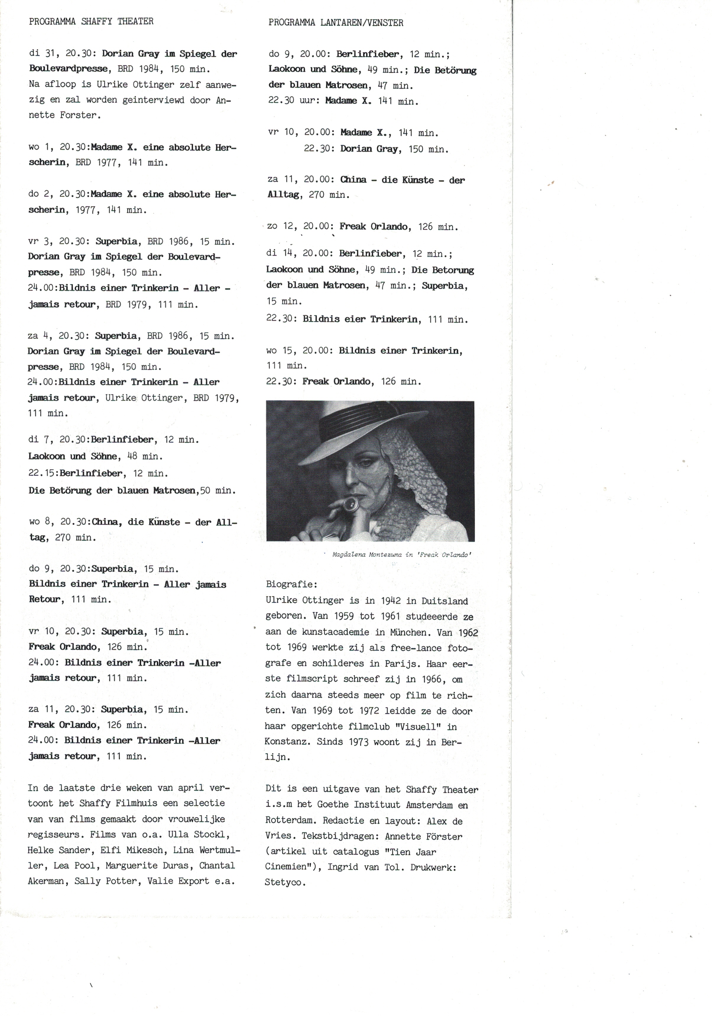 ULRIKE OTTINGER FILM-RETROSPECTIEF