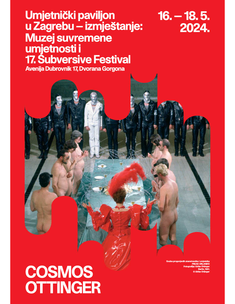 Cosmos Ottinger ist der Titel des Programms, mit dem der Kunstpavillon in Zagreb in Zusammenarbeit mit dem Subversive Film Festival und dem Museum für Zeitgenössische Kunst die Filmregisseurin und Multimediakünstlerin Ulrike Ottinger im Rahmen der Reihe Landscapes of Simultaneous Times präsentiert: Über Erinnerungspraktiken in der zeitgenössischen Kunst. Anlässlich ihres Gastspiels in Zagreb ehrt das Subversive Filmfestival sie mit dem Preis für ihr Lebenswerk The Wild Dreamer. Das Programm findet vom 16. bis 18. Mai 2024 im Museum für zeitgenössische Kunst Zagreb statt.