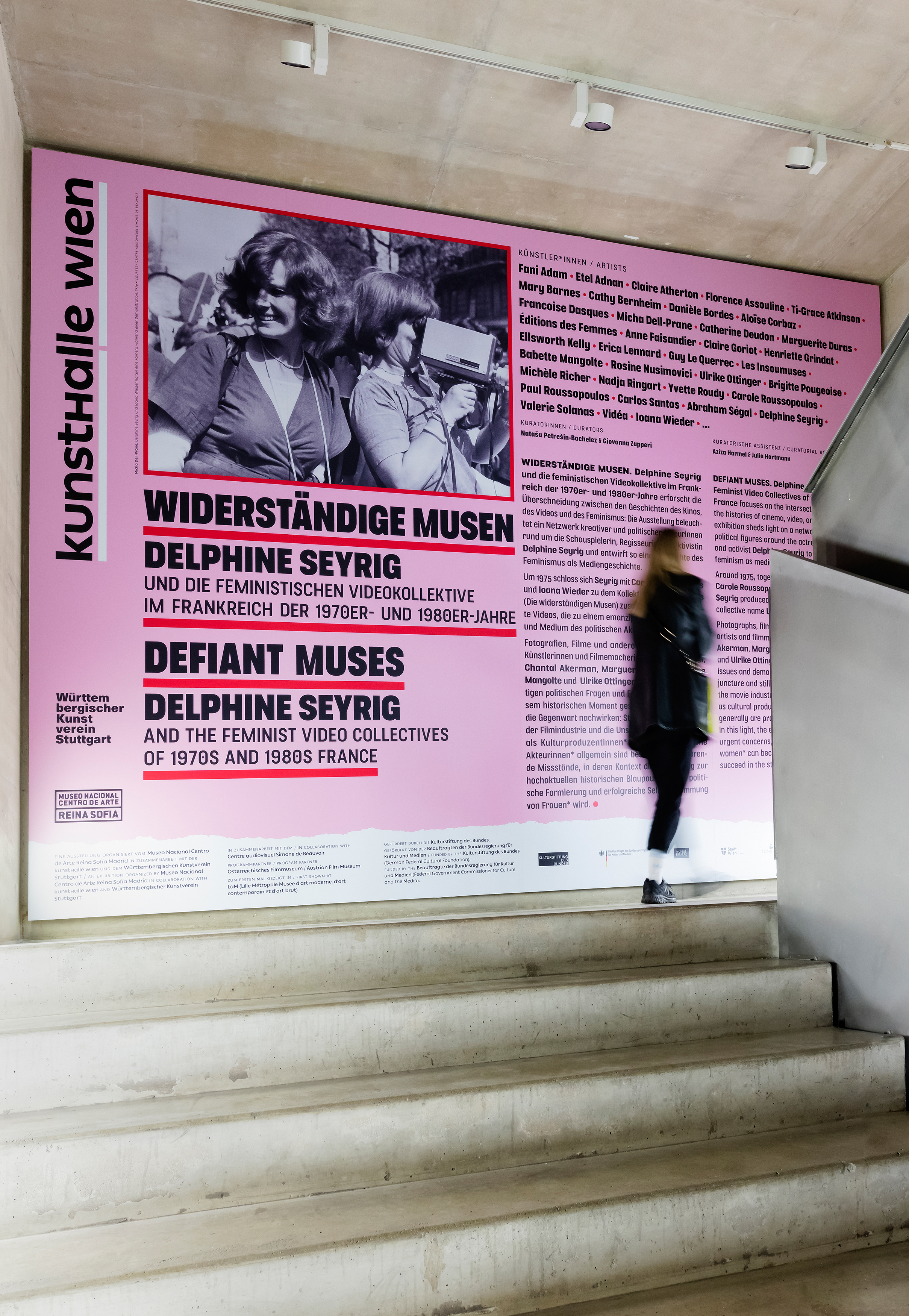 Widerständige Musen. Delphine Seyrig und die feministischen Videokollektive im Frankreich der 1970er- und 1980er-Jahre erforscht die Überschneidung zwischen den Geschichten des Kinos, des Videos und des Feminismus: Die Ausstellung beleuchtet ein Netzwerk kreativer und politischer Akteurinnen rund um die Schauspielerin, Regisseurin und Aktivistin Delphine Seyrig und entwirft so eine Geschichte des Feminismus als Mediengeschichte.