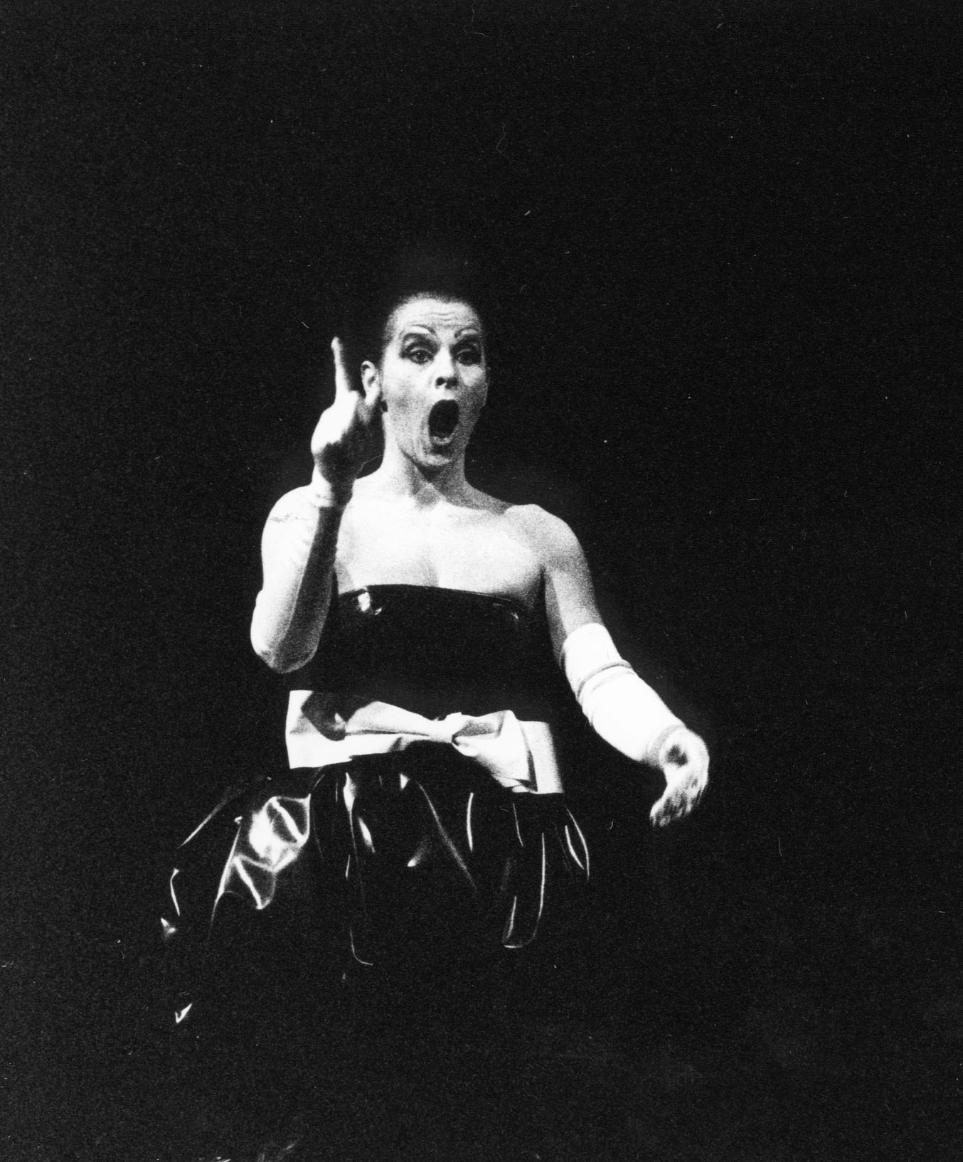 Davor die Stumme Rednerin. Gestikulierend liest sie (die Gehörlose Ingeborg Podehl) Wort für Wort nach vorn...