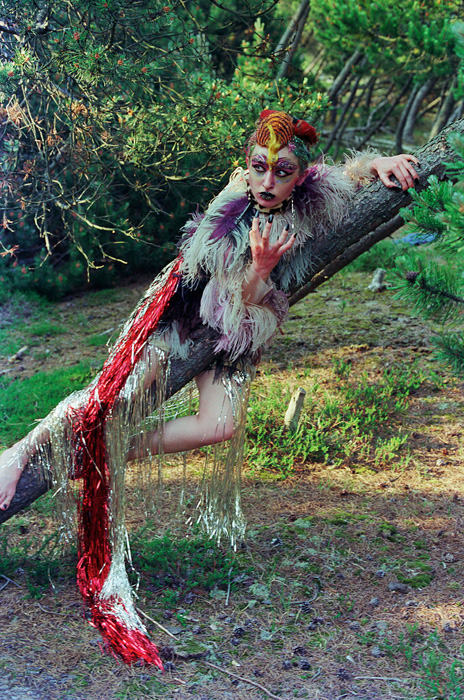 […] Die Sirene schreitet, violett gekleidet und mit einem eckigen Turban auf dem Kopf, durch den Wüstensand (die Wanderdüne auf Sylt, wo der Film in wenigen Wochen mit kleinstem Team gedreht wurde), und eine rhythmische Blendenvariation signalisiert das Verfließen von Zeit. Aber auch, wie sich später erweisen wird, den Herzschlag des Schicksals. Verweisen solche Techniken (die in abgewandelter Form wieder in Bildnis einer Trinkerin auftauchen) auf den Experimentalfilm, so gibt es andererseits auch Sequenzen, die die Collage zur filmischen Montage erweitern: Valeska Gert spielt den alten Vogel, und ihr Sterben wird, in einer Parallelmontage, begründet aus dem Tod des jungen Vogels. (Für diesen Film, sagt Ulrike Ottinger, hätten sie alle Federn gekauft, die in Berlin nur irgend zu finden waren. Und die trägt alle Tabea Blumenschein.) […]