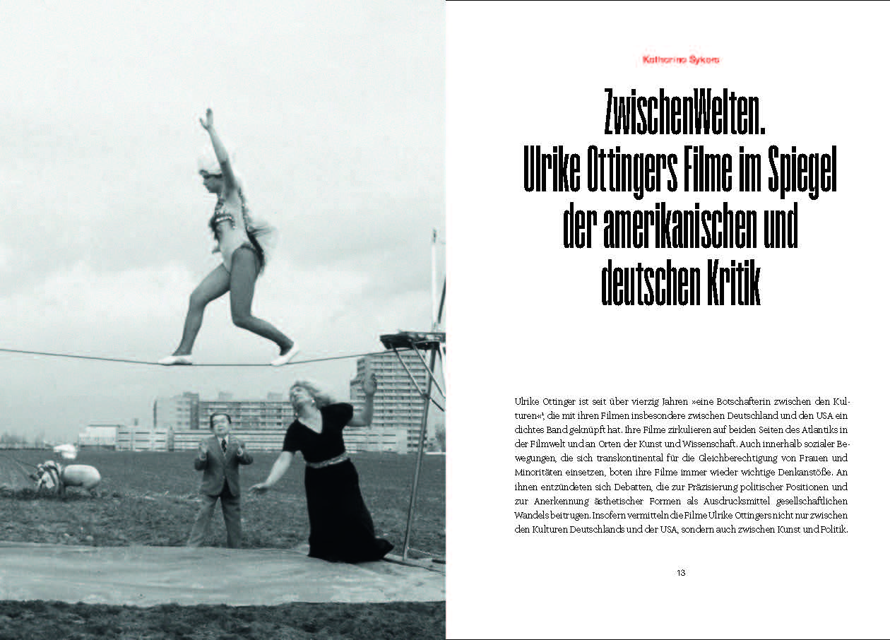 Ulrike Ottinger ist seit Beginn der 1970er Jahre eine Pionierin des Queer Cinema, das Positionen des Frauen- und Feministischen Films theoretisch, bildpolitisch und ästhetisch ausdifferenziert hat. Schon ihr Film Madame X. Eine absolute Herrscherin (1977) avancierte in den US-amerikanischen wie europäischen Kinos, den universitären Filmklassen und queeren Subkulturen zu einem Kultfilm. Es war der Beginn einer bis heute anhaltenden, intensiven cineastischen wie filmtheoretischen Wechselbeziehung zwischen Deutschland und den USA. Mit Ottingers Spielfilmen (der Berlin-Trilogie: Bildnis einer Trinkerin, Freak Orlando und Dorian Gray im Spiegel der Boulevardpresse, sowie Johanna d’Arc of Mongolia), die durch ihre narrative Imagination und formale Radikalität die Konventionen des Art House Kinos sprengten, und mit ihren ethnologischen Dokumentationen, deren Langzeitformate und poetische Narrative einen Gegenpol zu den Kurzformen der digitalen Medien setzten, erweiterte sich das Spektrum ihrer Zuschauerschaft auf beiden Kontinenten: Debatten um die Potenziale des Bewegtbildes als historiografisches Medium wurden durch ihre Filme ebenso angestoßen wie postkoloniale Diskussionen um die ›Begehbarkeit der Welt‹.