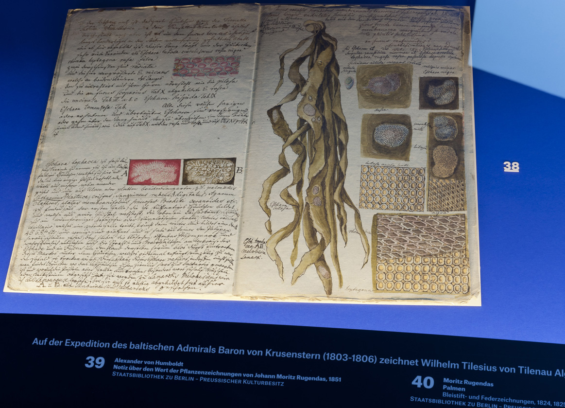 Ulrike Ottinger's film recordings and travel notes encounter historical documents of famous world travelers from the 18th and 19th centuries in the exhibition. The confrontation of the artist's contemporary filmic observations with unique historical manuscripts from the State Library and objects from the holdings of the Ethnological Museum, the Museum of Natural History and the Botanical Museum creates an exciting story, from the first preparations for an expedition to the return of the travelers enough. Your knowledge, impressions and ideas span the gap between past and present. In addition to the films, the focus of the exhibition is therefore on the diaries, letters and drawings of Alexander von Humboldt, Reinhold Forster, Adelbert von Chamissos and Ulrike Ottingers.