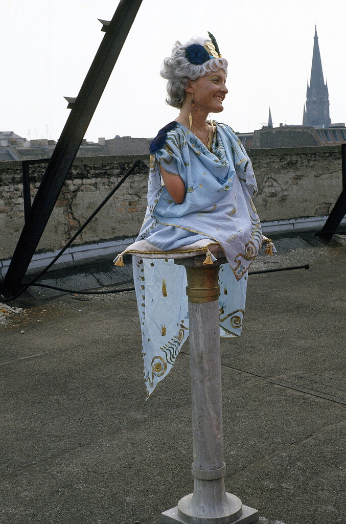 Schwarz-Weiß-Fotofries mit Portraits von Tabea Blumenschein et al. (1975-1979): Schwarz-Weiß-Fotografien und Fotonovelas mit Magdalena Montezuma, Delphine Seyrig, Veruschka von Lehndorff: Fotografien sowie Dreh- und Arbeitsbücher aus den Kontexten der Filme Madame X – Eine Absolute Herrscherin (1977). Bildnis einer Trinkerin. Aller Jamais Retour (1979). Freak Orlando (1981 ). Dorian Gray und Spiegel der Boulevardpresse (1983). Johanna d'Arc of Mongolia (1988): Film-Präsentation von Freak Orlando (1981).