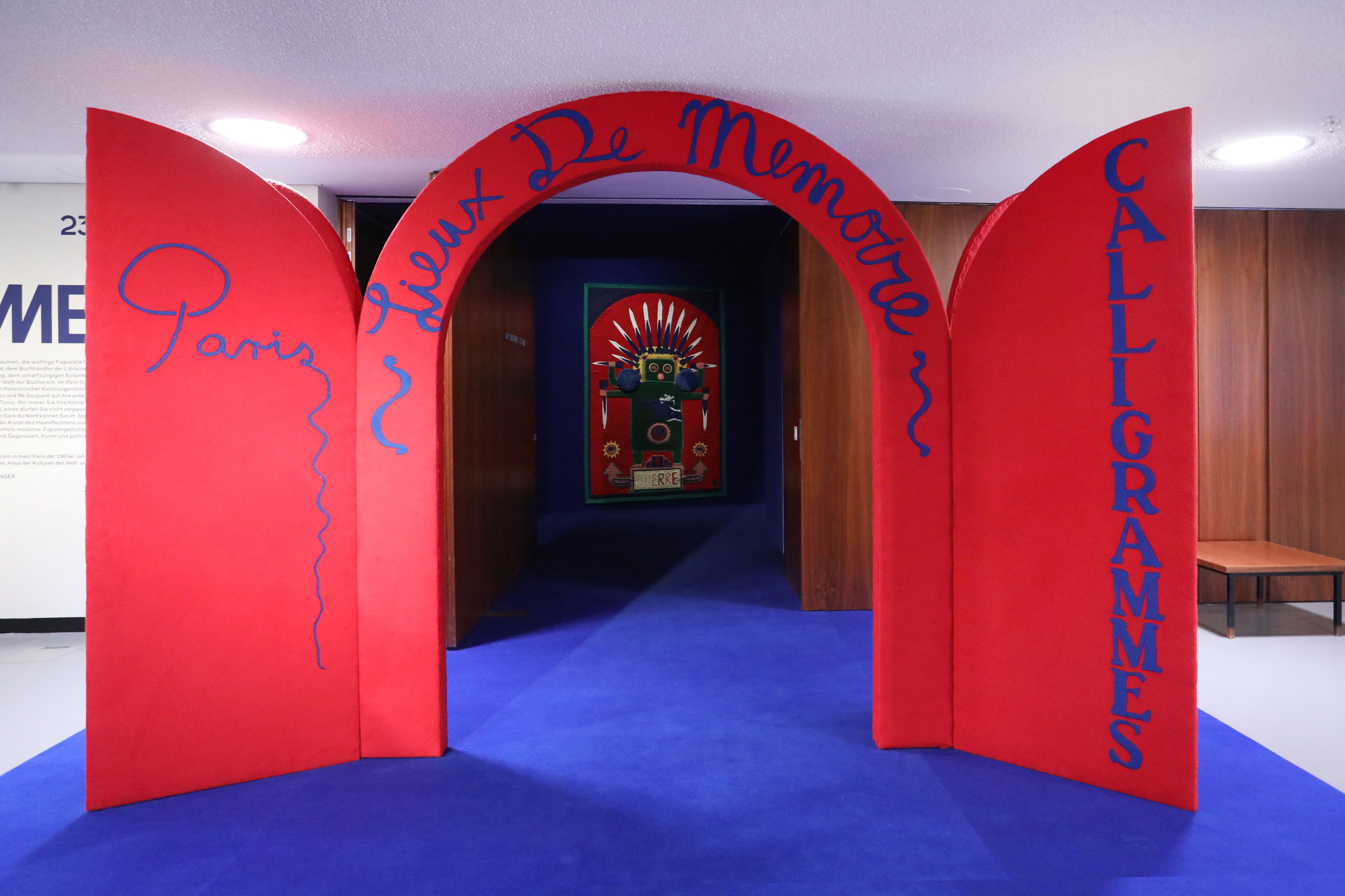 Paris Calligrammes refers to the city where I lived as a young painter in the 1960s, and simultaneously stands for a pictorial script that translates texts into visual figures. Guillaume Apollinaire, then as now one of my artistic role models, gave the name to a small bookshop in Saint-Germain-des-Prés, from where I explored Paris, with his book of poetry Calligrammes. Poèmes de la paix et de la guerre (Poems of Peace and War). On my strolls through the city the real topography of the streets, quays, and squares with their traces of French decolonization, the Algerian War, and the student revolt of 1968 became superimposed with my imaginary city of visual arts, music, and literature.