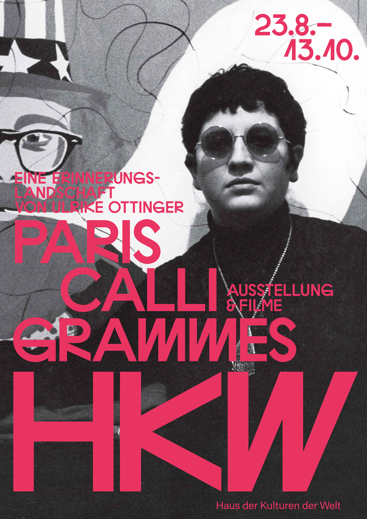 „Through this exhibition’s eponymous video, Paris Caligrammes (2019), filmmaker and photographer Ulrike Ottinger charts her time in the French capital as an artist during the 1960s. Combining archival footage with her own material, she meanders poetically through the city at a time when the discrepancy between postwar utopian ideals and people’s lived experiences was such that tension and unrest were fermenting. While viewers can sense the effects of World War II, the Algerian War (1954–62) and the 1968 student protests, they are also introduced to the Librairie Calligrammes – a meeting place of exiled German intellectuals – as well as the Cinémathèque françai- se, where the artist herself fell in love with film.“