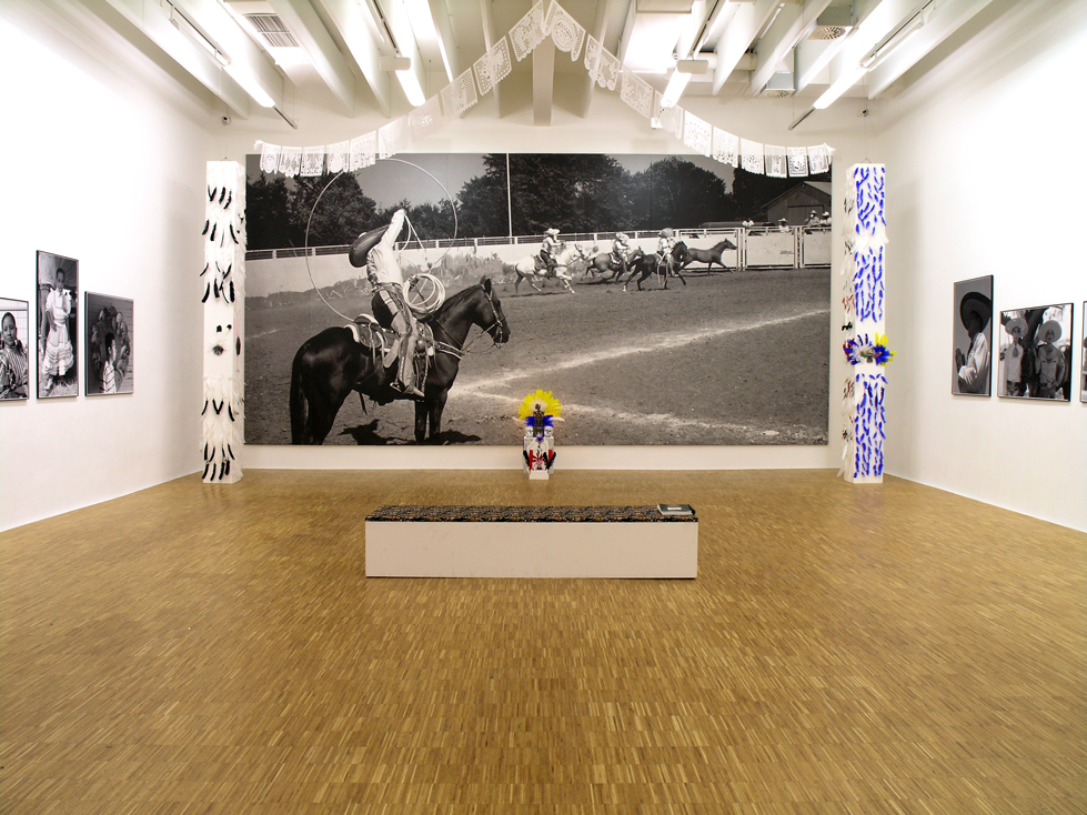 Die Ausstellung vereinte Motive unterschiedlichster Kulturen und sozialer Kontexte, die um Todes- und Auferstehungsfaszination kreisen. Jenseits eines wissenschaftlich-ethnographischen Zugangs inszenierte die Künstlerin im Großen Saal des Salzburger Kunstvereins eine Zusammenschau ritueller Praktiken divergenter kultureller Herkunft. So hat die Künstlerin 1991 bei ihrem Besuch in der Taiga an Seancen weiblicher Schamanen teilgenommen und diese fotografisch und filmisch aufgenommen. Zudem sind Bilder aus dem Umfeld von San Antonio/Texas zu sehen, wo sie an Kirchenfesten und Charreadas teilgenommen und den Prozess der Hybridisierung der deutschen, spanischen, indianischen und anglo-amerikanischen Kultur untersucht hat. Spanische Osterprozessionen und die Dokumentation der von Frantisek Rindt in den 1870er Jahren aus menschlichen Knochen gestalteten Kapelle in Tschechien bildeten weitere Bestandteile der Schau. Diese Elemente wurden konterkariert und gebrochen durch inszenierte Fotografien aus den Kontexten ihrer Filme Freak Orlando und Dorian Gray im Spiegel der Boulevardpresse. Im Zentrum aber stand die Installation des Europa-Zelts, welches das Motiv des Raubes der Europa durch Zeus in der Verwandlung als Stier in unterschiedlichen künstlerischen Umsetzungen von der Antike bis zur klassischen Moderne durchspielt. Ulrike Ottinger ging es bei dieser Ausstellung nicht um eine Homogenisierung unterschiedlicher ritueller Praktiken, sondern um einen Zugang, der, wie Victor Segalen bereits im frühen 20. Jahrhundert in seinen „Schriften zum Exotismus“ anregte, jenseits einer Assimilierung auf eine Anerkennung kultureller Differenz zielt. Ottinger thematisiert existentielle Fragestellungen und ihre vielfältige Repräsentation und Brechung und stellt sich somit ihrer Verdrängung und Tabuisierung entgegen. Im August zeigte das Salzburger Filmkulturzentrum DAS KINO in Kooperation mit dem Salzburger Kunstverein eine Retrospektive von Ulrike Ottingers Filmen, die den Zeitraum von 1973 - 2004 umfassen wird. (Auszug aus Homepage Salzburger Kunstverein)