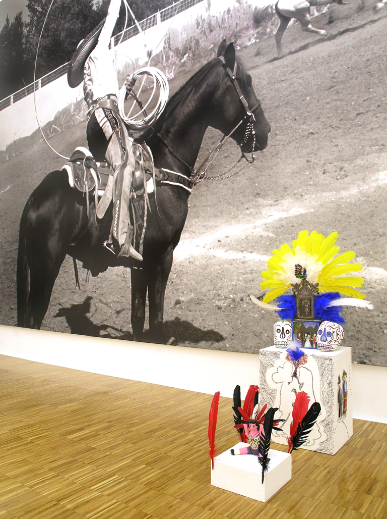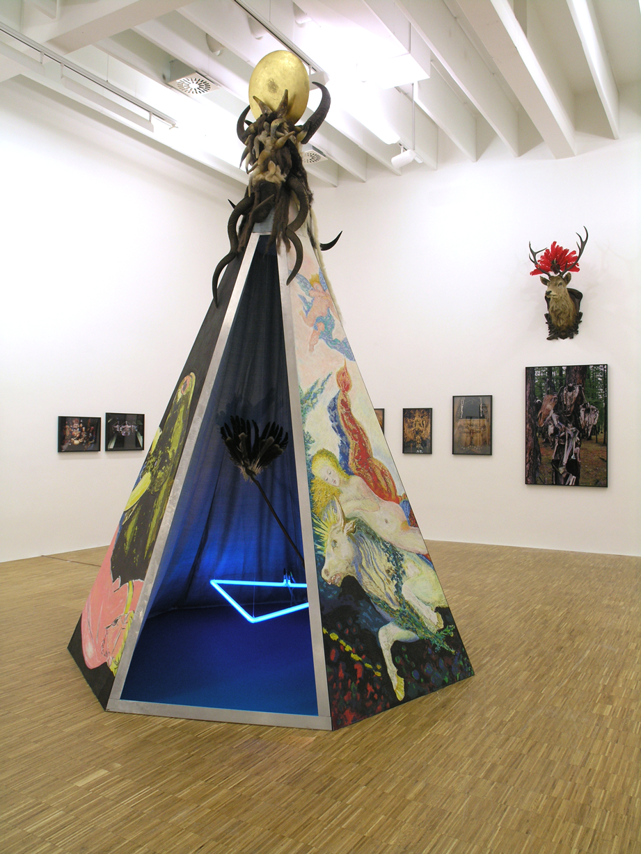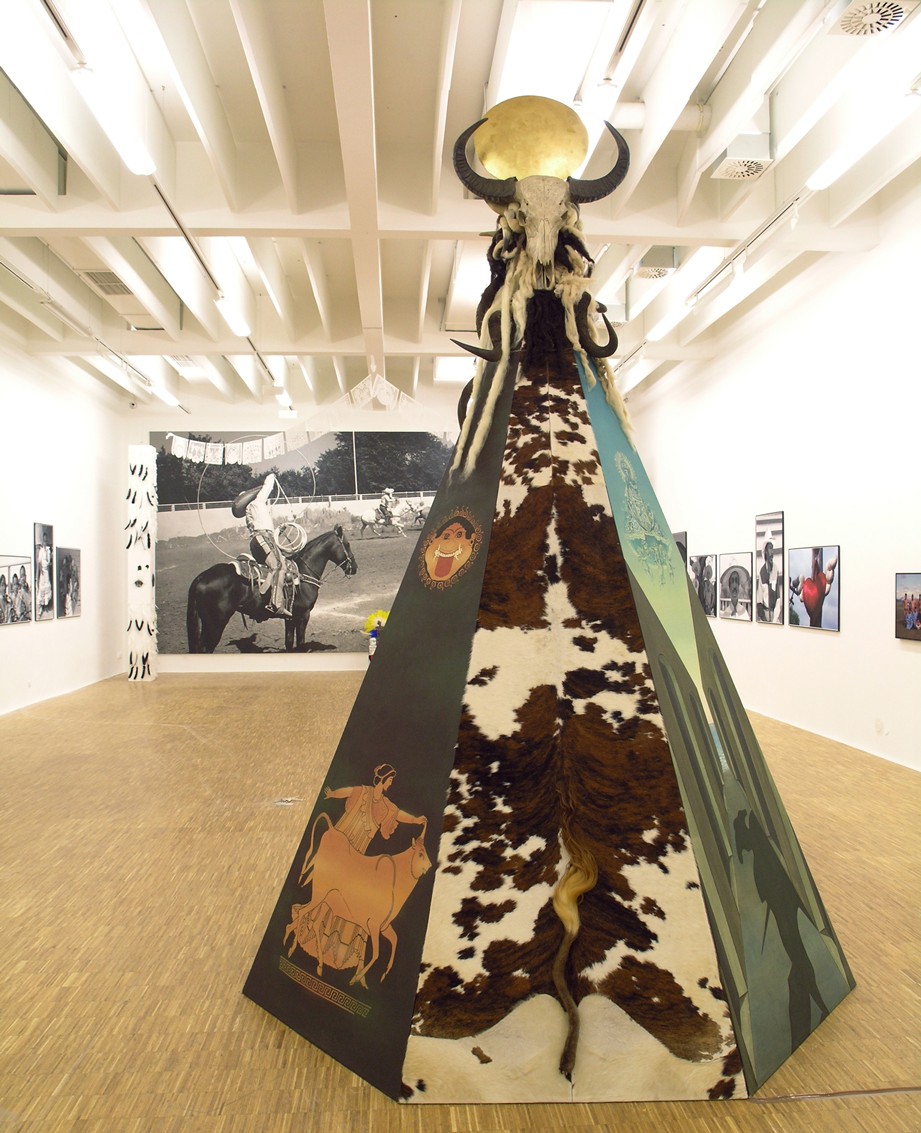 Rauminstallation: Europa und der Stier (1987), Zelt-Objekt mit 6 verschieden gestalteten Seitenelementen, Pastellkreide, Öl und Acryl-Malerei, Fell und Fotografie und innen mit einer Assemblage aus blauer Seide, blauem Neondreieck, Zauberstab, Adlerfedern, bekrönt von einer goldenen Scheibe auf Halbmond-Hörnern, Schafshörnern und Wolle; Fotografien aus den Kontexten der Filme: Freak Orlando (1981), Dorian Gray im Spiegel der Boulevardpresse (1983), Taiga (1991/92); Präpariertes Hirschgeweih; Bildarchive (2004), Dia-Installation mit vier Projektoren und orientalischem Diwan; Assemblagen aus Objekten, kolorierten Fotos, Zeichnungen, Papier, Pappe, Holz, Stoff sowie Fotografien und dem Arbeitsbuch aus dem Kontext der Ausstellung FACES, FOUND OBJECTS, AND ROUGH RIDERS (2004).