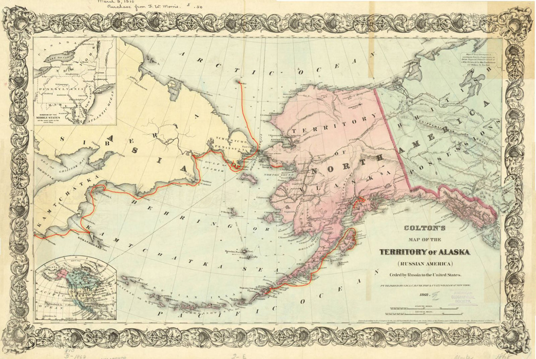 This part of the journey interests me especially. It includes the regions of Kamchatka, the Aleutian Islands, the Saint Lawrence Island, the Bering Strait, Chukchi Peninsula, and the coast of Alaska.