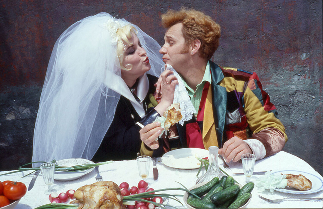 Consequently, she pulls out all the stops, and her Ukrainian cast keep up. Ottinger gives the actors ample room for spontaneity, but masters the narration in expert style. Each vignette is a surprising, accurately-applied tableau, every shot an opulent painting. The narrative rhythm is generated by a static composition that invites the eye to linger and a lively performance that could almost burst out of its structure. Overall, this corresponds to the twin movement of com-pleting a numerical task (that of searching for the twelve chairs, piece-by-piece and beyond) and unfolding within the autonomy of the individual episodes. Such structures take a lot of composing. Ulrike Ottinger's film should not have been shorter, for the picaresque spirit unfolds only in volume - and time.