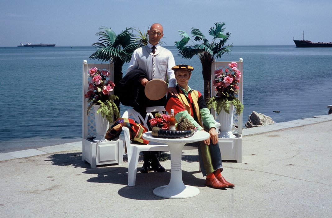 Nevertheless, Ottinger films the terrain with great affection, bringing out its tawdry beauty and sharp Mediterranean (or Black Sea if you prefer) light. An acclaimed still photographer, she does own lensing here, favoring arty, pleasingly off-center framing and long-held, tableau-like set ups that create a curious sense of stasis in a film about people always on the move. Music is almost all source throughout.
